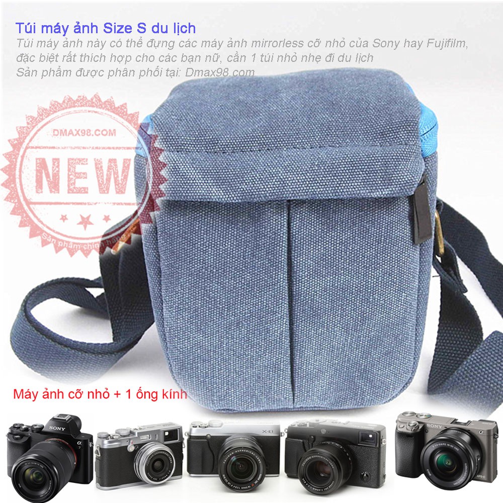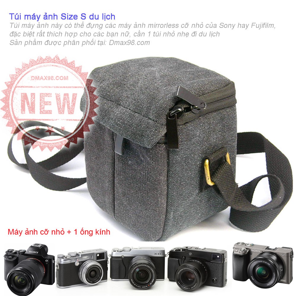Sản phẩm đựng được các máy ảnh ống kính rời nhỏ gọn như SOny A6000 ... Sony nex, Fujifilm ... Những chiếc DSLR không thể đựng được túi này, các bạn nên lưu ý điều này