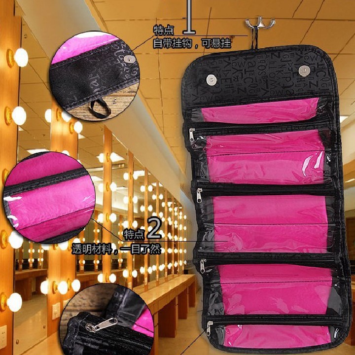 TÚI ĐỰNG MỸ PHẨM 'Roll-N-Go "là bạn đồng hành tốt nhất của bạn. Bạn có thể phân chia tất cả mọi đồ vật trong từng khoang riêng biệt. Với 4 ngăn có khóa kéo rộng rãi.TÚI ĐỰNG MỸ PHẨM NHIỀU NGĂN có thể chứa mỹ phẩm, đồ dùng vệ sinh, đồ trang sức ,đồ dùng cá nhân và nhiều hơn nữa. Nhỏ gọn nhưng vẫn rộng rãi, 'Roll-N-Go' đi kèm với một vòng lặp treo lên thuận tiện,khi cần đi du lịch hay cất đi chỉ cần xếp Cuộn lại.