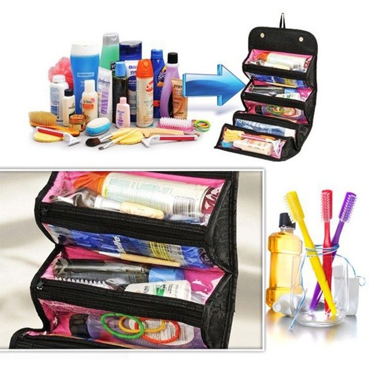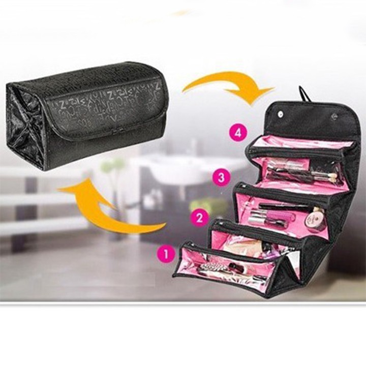 TÚI ĐỰNG MỸ PHẨM 'Roll-N-Go "là bạn đồng hành tốt nhất của bạn. Bạn có thể phân chia tất cả mọi đồ vật trong từng khoang riêng biệt. Với 4 ngăn có khóa kéo rộng rãi.TÚI ĐỰNG MỸ PHẨM NHIỀU NGĂN có thể chứa mỹ phẩm, đồ dùng vệ sinh, đồ trang sức ,đồ dùng cá nhân và nhiều hơn nữa. Nhỏ gọn nhưng vẫn rộng rãi, 'Roll-N-Go' đi kèm với một vòng lặp treo lên thuận tiện,khi cần đi du lịch hay cất đi chỉ cần xếp Cuộn lại.Giữ những đồ vật của bạn 1 cách ngăn nắp, có tổ chức, an toàn và ở một nơi.