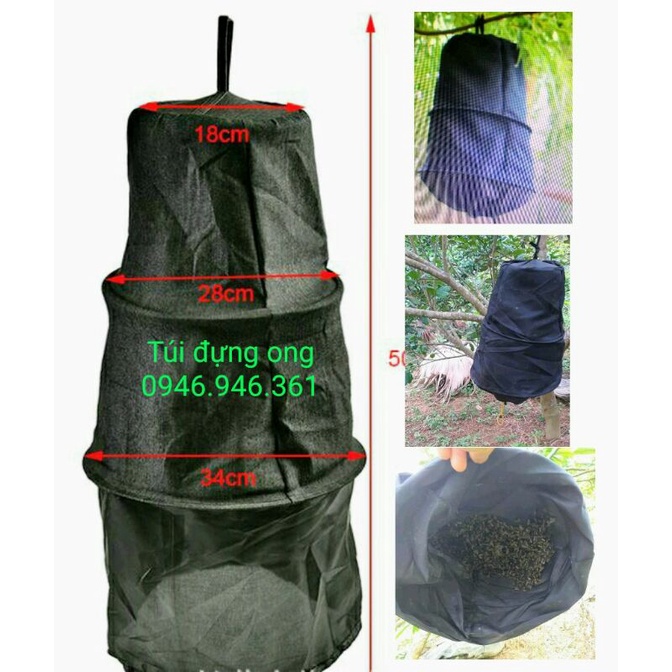 Túi đựng ong,túi bắt ong được thiết kế 3 khoang tiện dụng,kích thước từng khoang em có ghi trong hình.Túi được dùng để bắt ong như khi ong chia đàn,hay bắt ong nơi khác về,ta chỉ cần bắt con ong chúa bỏ vào dọ treo trong túi hoặc bôi ít mật ong vào trong túi để thu hút đàn ong bay vào.Có dây buộc thắt,dễ sử dụng,lại tiện lợi.