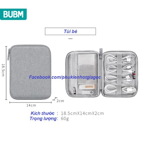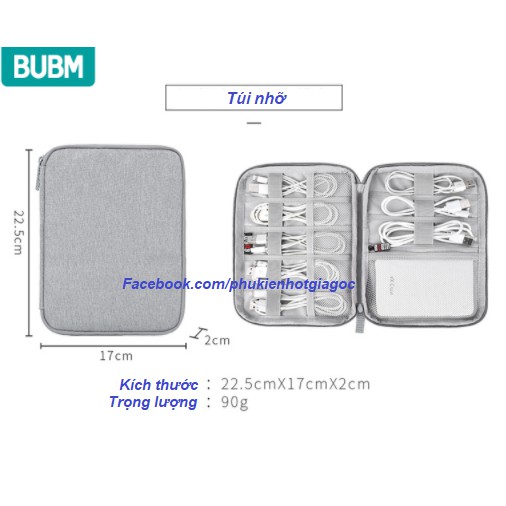 Túi phụ kiện công nghệ BUBM chuyên dụng 1 ngăn đựng dây cáp, pin sạc dự phòng có quai xách cầm tay tiện lợi