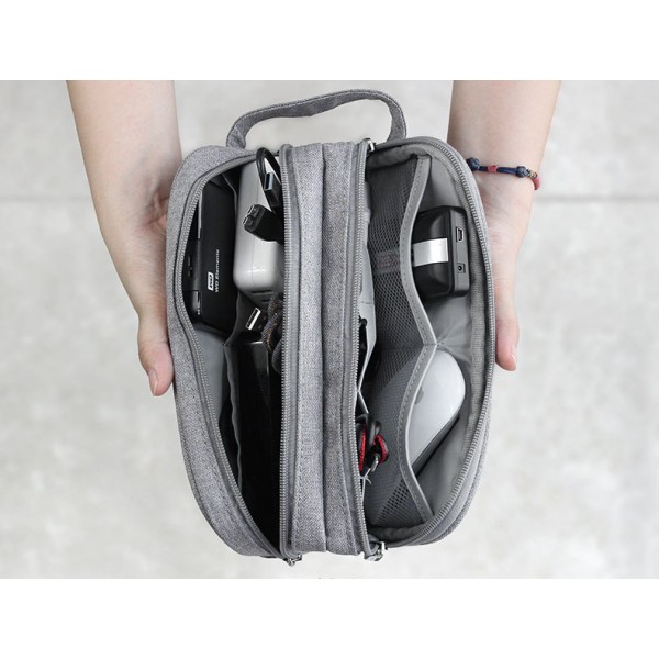 Với mẫu túi đựng phụ kiện công nghệ tiện dùng hơn khi mang theo đi chơi. Mang theo những vật thường dùng như Pin dự phòng, cáp sạc, USB, cục phát 4G …