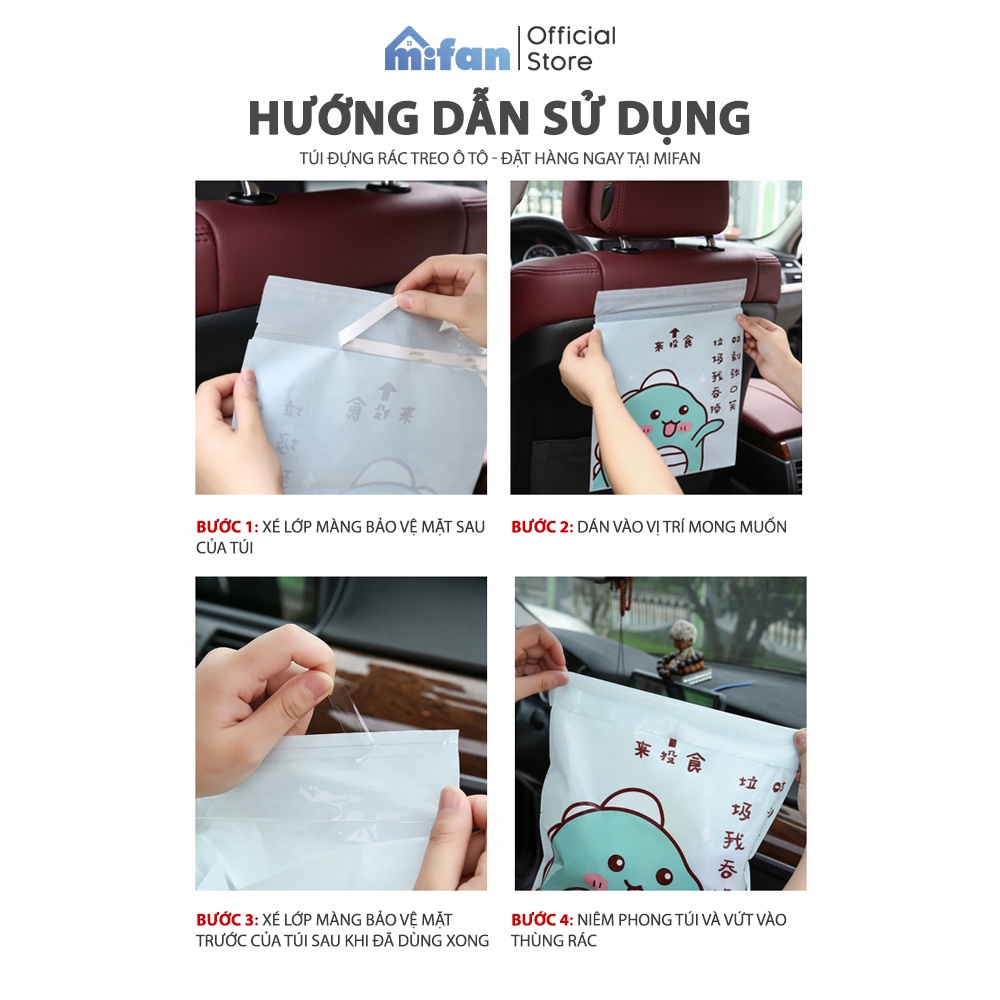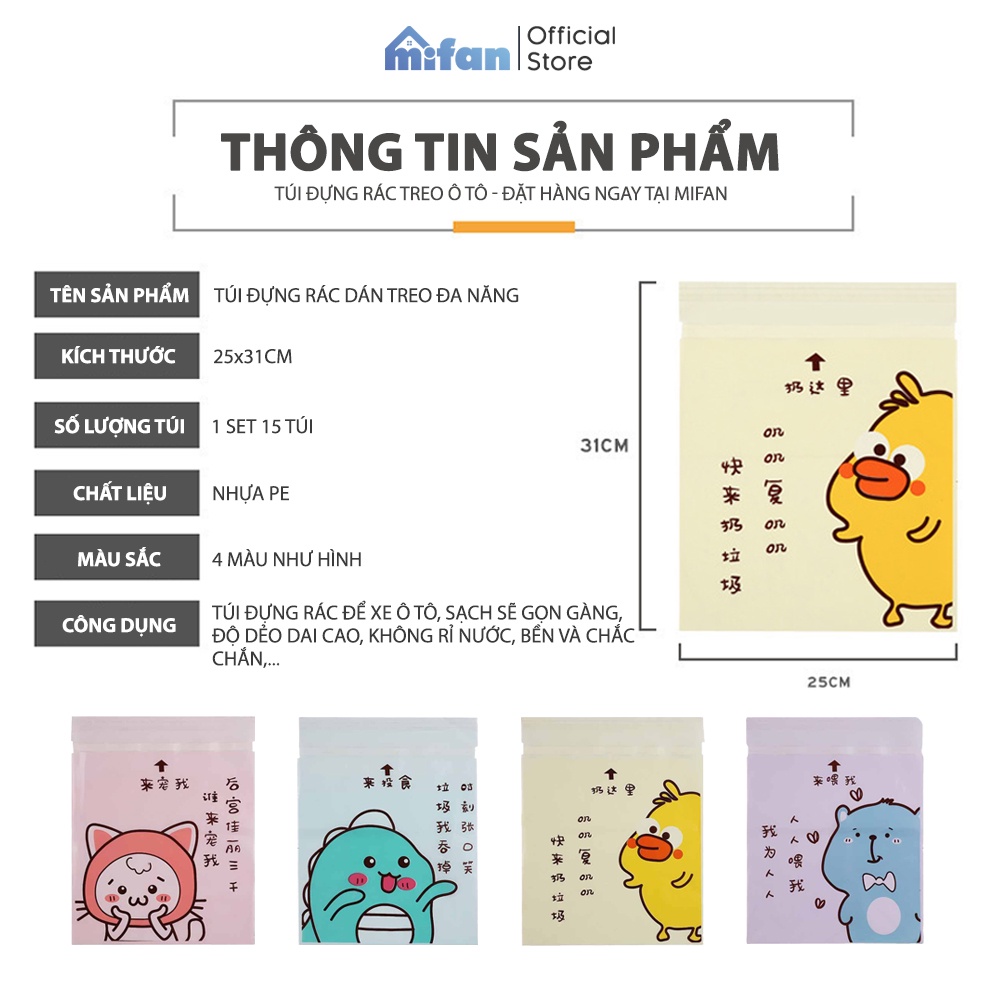 Giới thiệu Túi Đựng Rác Dán Treo Ô Tô Xe Hơi 25x31cm - 15 túi/set - Siêu dính, chịu tải nặng, Siêu dai, Chống rò rỉ nước - MIFAN