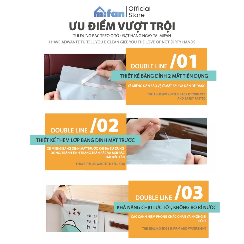 Bộ 15 TÚI ĐỰNG RÁC Ô TÔ, XE HƠI 25x31cm - SIÊU DÍNH, CHỐNG RÒ RỈ - TREO BẾP, BÀN HỌC, BÀN LÀM VIỆC - MIFAN❌HÃY QUÊN ĐI những loại túi bóng hở, bất tiện và không thể ngăn mùi. Giờ đây bạn có thể an tâm sử dụng túi đựng rác treo dán vô cùng tiện lợi tại MIFAN!