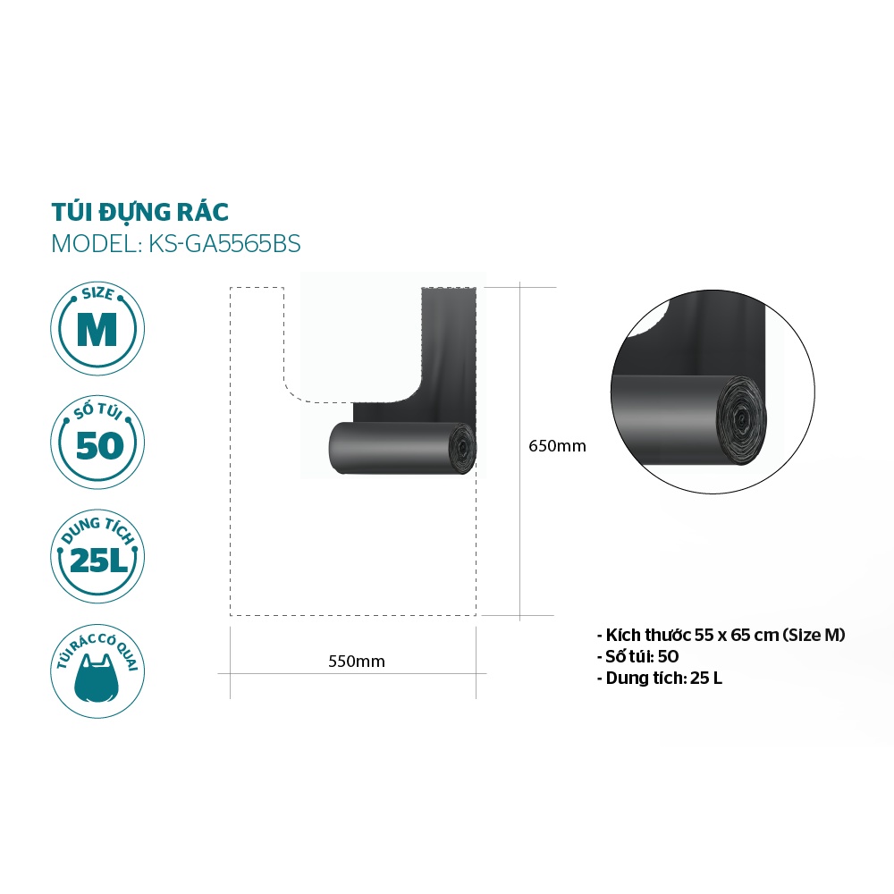Sản phẩm được thiết kế không quai nhưng vẫn rất dễ thao tác khi sử dụng. Kích thước phù hợp để xử lý các loại rác thải sinh hoạt và dùng cho nhiều loại thùng rác thông dụng trên thị trường. Được thiết kế dưới dạng cuộn với các điểm ngắt dễ xé.