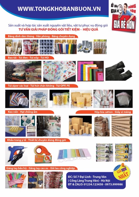Tổng kho Thắng Mai chuyên phân phối sỉ lẻ nguyên vật liệu phục vụ đóng gói: màng xốp, băng dính, màng co chít, túi Ziper, túi hút chân không, túi quà, túi nilon các loại....Bán giá sỉ siêu tốt đối với đơn hàng số lượng lớn và thường xuyên. Không phân biệt khách sỉ hay khách dùng trực tiếp
