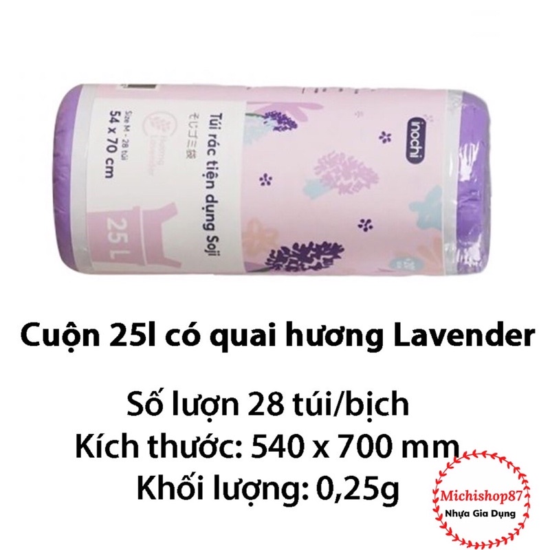 Túi Đựng Rác Sinh Học Tự Hủy Inochi, Túi Rác Hương Chanh, Hương Lavender Có Quai Tiện Dụng, Dạng Cuộn Loại 10L 25L 50L✅ TÚI RÁC TIỆN DỤNG SOJI HƯƠNG LAVENDER, HƯƠNG CHANH