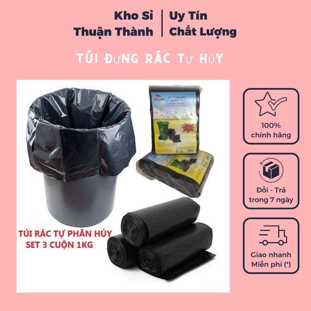 Túi đựng rác tự hủy sinh học bảo vệ môi trường , bịch 3 cuộn 1kg (khosithuanthanh)