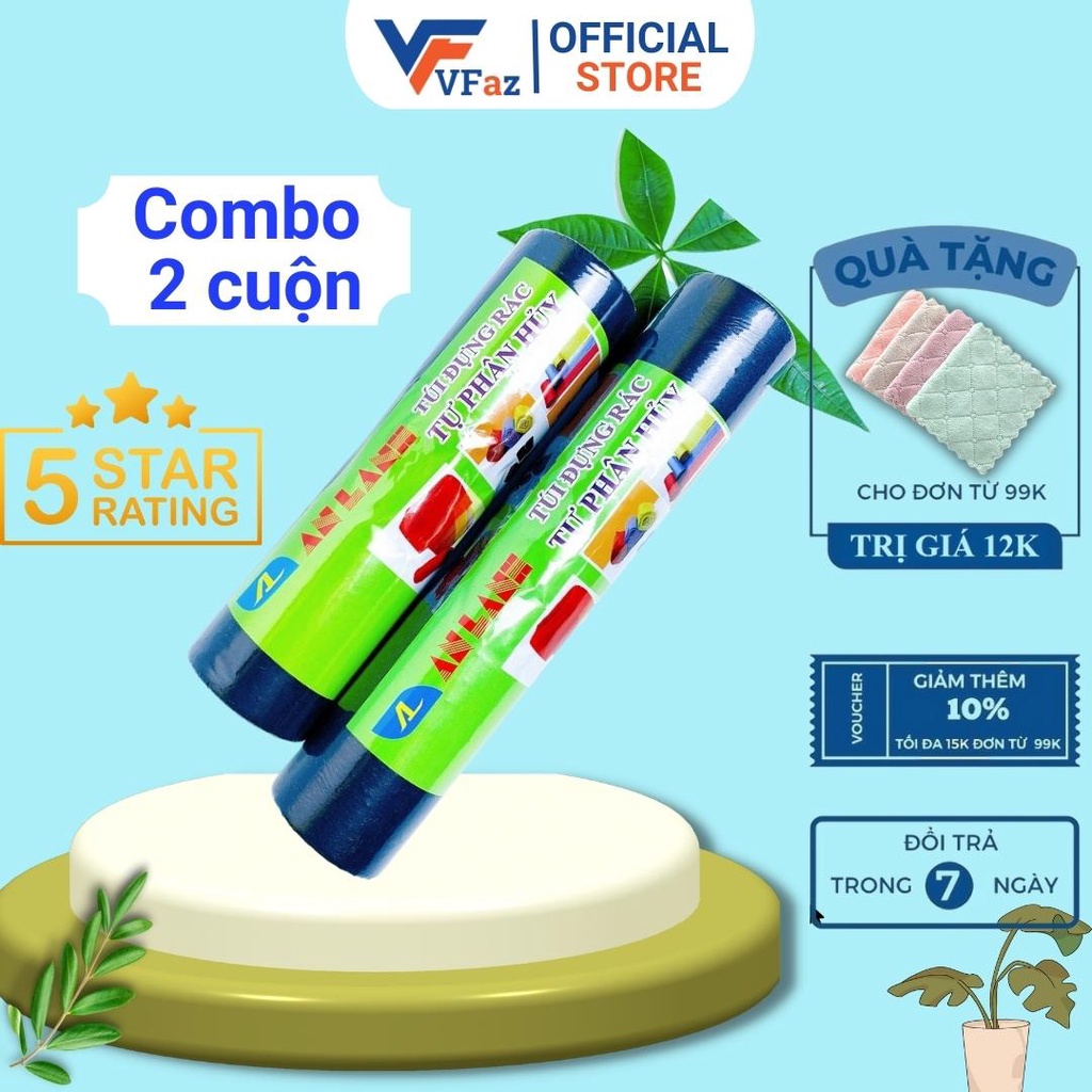 Túi đựng rác tự hủy sinh học An Lành Combo 2 cuộn màu đen bao đựng rác thải sinh hoạt 0.5kg VFaz Official Store