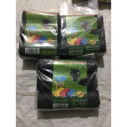 Túi Đựng Rác Tự Phân Huỷ 3 Cuộn/1kg Không LõiSét 3 cuộn/1 kg túi đựng rác tự phân huỷ không lõi,màu đen