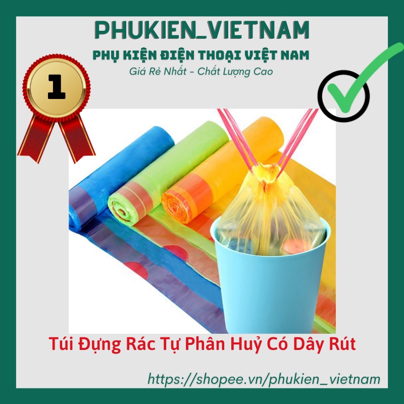 Nhà cửa & Đời sống > Dụng cụ chăm sóc nhà cửa > Túi nilon & túi rác || Túi Đựng Rác Tự Phân Huỷ Có Dây Rút - 15 túi/cuộn - Tiện Dụng Sạch SẽCòn hàng