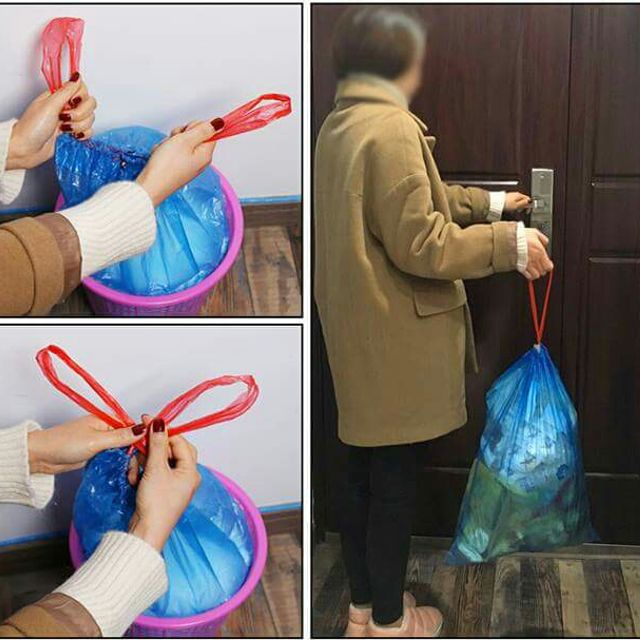 - Mỗi khi đổ rác bạn luôn khó chịu vì bị rác bẩn dính vào tay và mùi hôi của rác thải bốc lên do túi đựng rác thông thường không có dây buộc miệng túi, ảnh hưởng rất lớn đến sức khỏe và môi trường sinh hoạt của bạn. Cuộn túi đựng rác có dây rút sẽ giúp bạn xóa tan nỗi lo ấy.