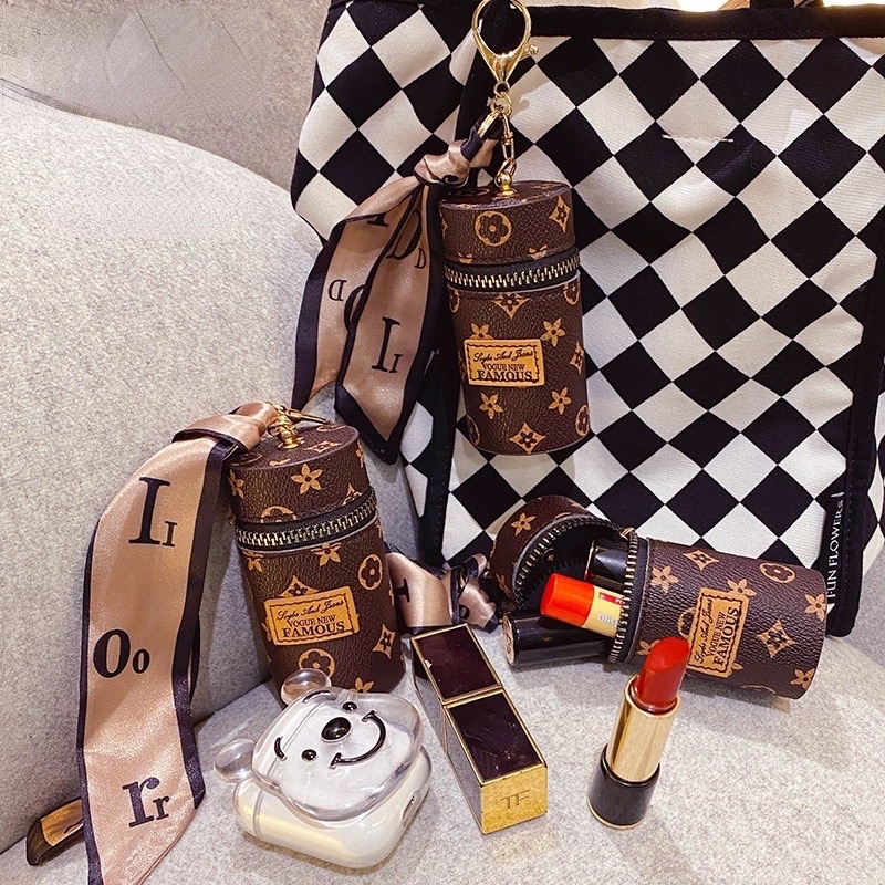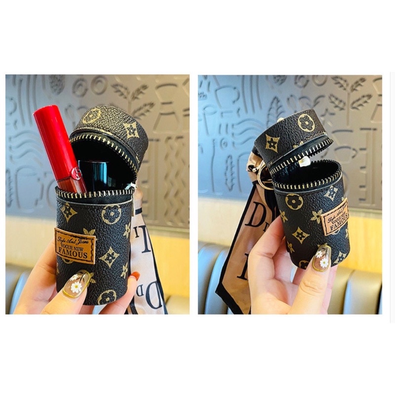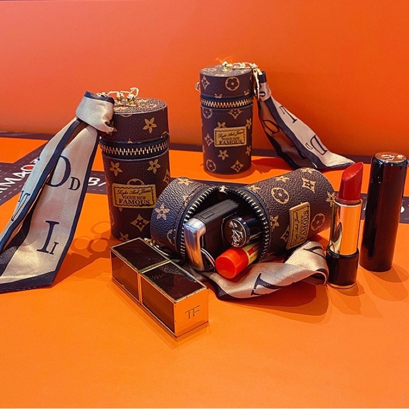 Túi Đựng Son Môi/Chìa Khóa/Khăn Choàng Cổ Bằng Da Phối Lụa Sáng Tạo Dễ Thương