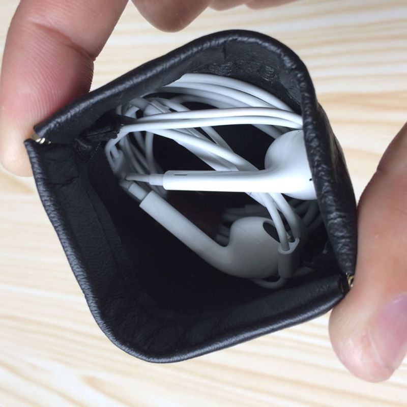 Shockproof Genuine Leather Headset Storage Bag Portable Earphone Pouch Carrying Case for Airpods Headphone AccessoriesDescription: