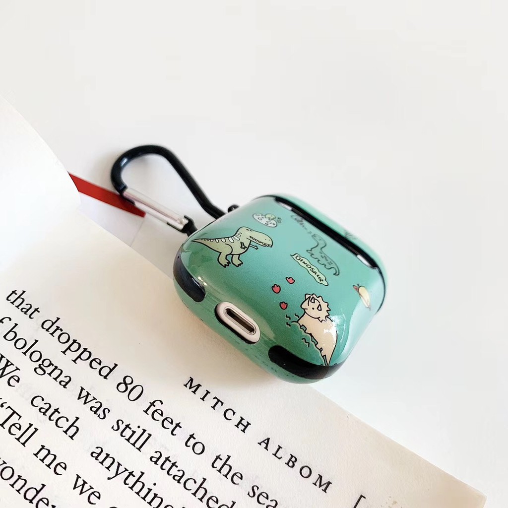 Giới thiệu Túi đựng tai nghe Airpods Case có móc khóa họa tiết khủng long dễ thương Green AirPod Soft Case With Keychain