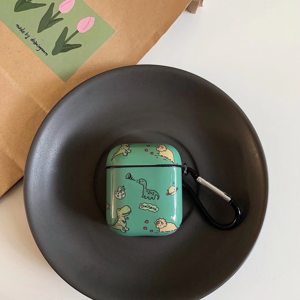 Điện Thoại & Phụ Kiện > Phụ kiện > Túi đựng điện thoại || Túi đựng tai nghe Airpods Case có móc khóa họa tiết khủng long dễ thương Green AirPod Soft Case With KeychainCòn hàng