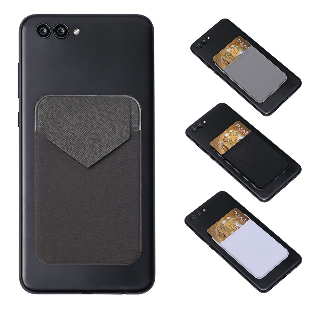 Túi Đựng Thẻ Bằng Da Màu Trơn Co Giãn Gắn Điện Thoại Tiện Dụng