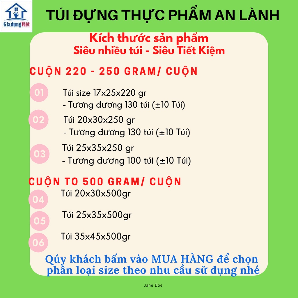 Nhà cửa & Đời sống > Dụng cụ nhà bếp > Khác || Túi Đựng Thực Phẩm Cao Cấp HDPE An Lành Nhiều Kích CỡCòn hàng