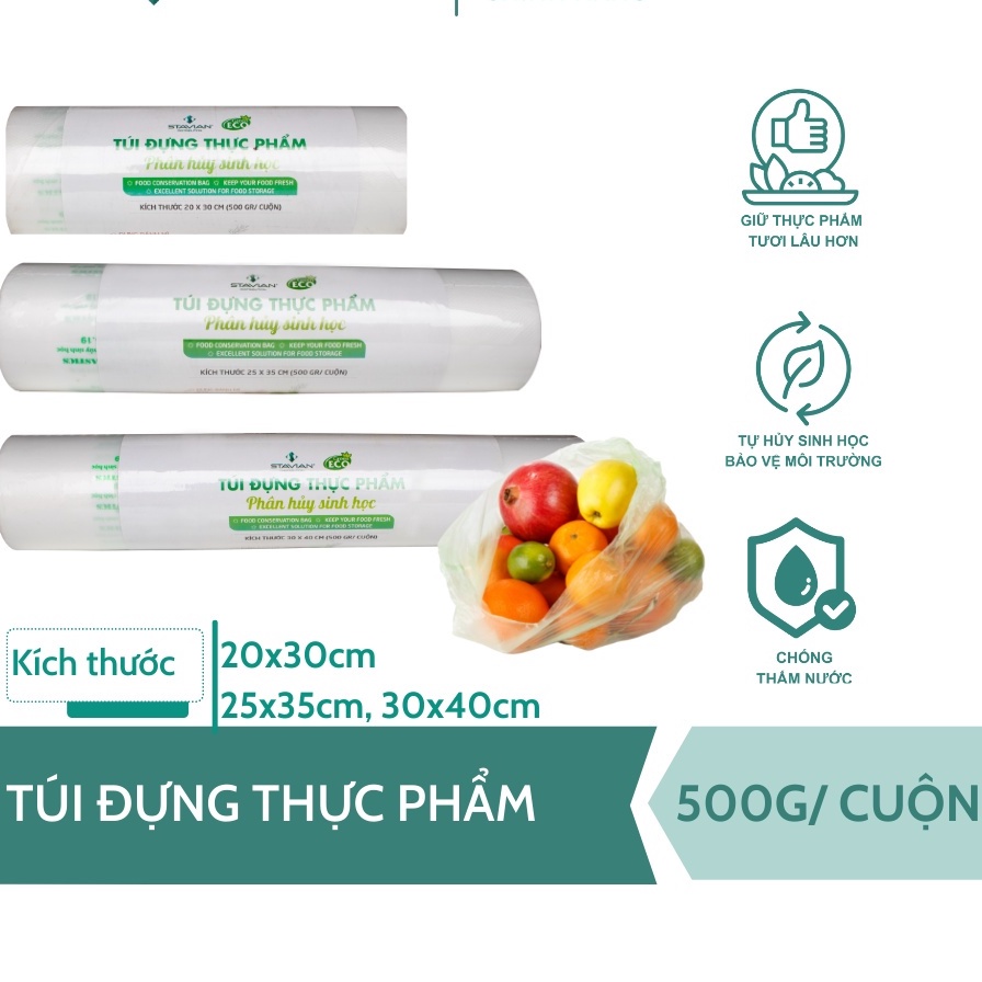 Túi Đựng Thực Phẩm HGVN Tự Phân Huỷ Sinh Học ECO Green Eco cuộn 500g 20*30cm, 25*35cm, 30*40cm1. Giới thiệu