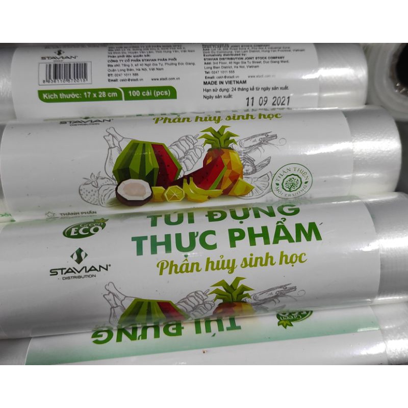 Túi đựng thực phẩm phân hủy sinh học Green Eco size 17x28cm (100 cái/1 cuộn)Thành phần: HDPE 80%, LDPE 10%, phụ gia tăng trong, chất tự phân hủy