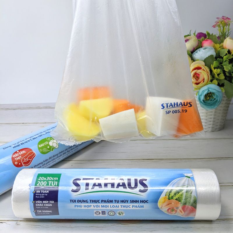 Giới thiệu Túi đựng thực phẩm STAHAUS Tự Hủy Sinh Học túi bảo quản thực phẩm đựng thức ăn an toàn 25x35 cm