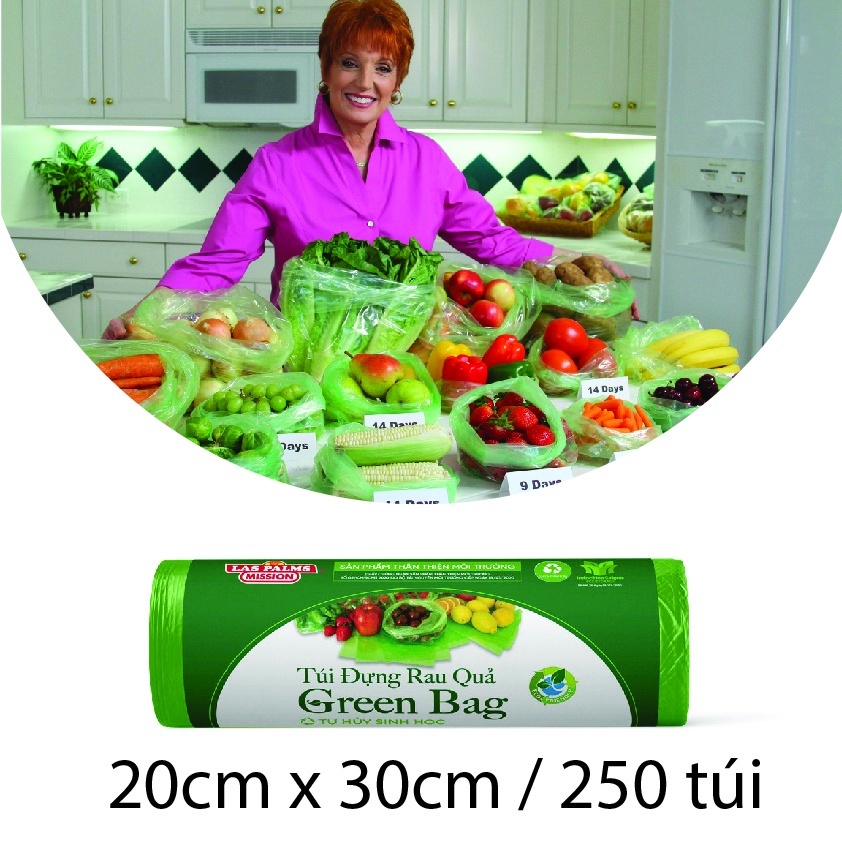 - Túi đựng rau quả Green Bag thương hiệu Laspalms là loại túi nilon phân hủy sinh học, không gây ô nhiễm môi trường như các loại túi nhựa thông thường.