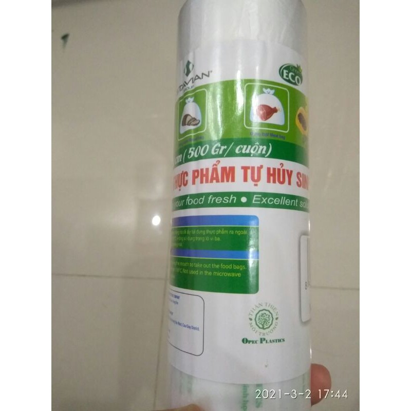 Nhà cửa & Đời sống > Dụng cụ chăm sóc nhà cửa > Túi nilon & túi rác || Túi Đựng Thực Phẩm Tự Hủy Sinh Học 20cm x 30cm(500gr/cuộn). An toàn cho người dùng - Bảo vệ môi trườngCòn hàng