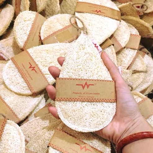 - Quy trình sản xuất: Xơ mướp nguyên liệu được thu mua từ các hộ gia đình chuyên trồng mướp ở Gia Lai, Đồng Nai, Bình Định. Khi Xơ mướp đủ già sẽ chắc, được bóc vỏ, tách hạt, giặt sạch, ép thẳng, phân loại…. và cuối cùng được đem đi gia công, may thành sản phẩm. Sản phẩm được may rất tỉ mỉ và đẹp giúp sản phẩm trổng rất dễ thương và có thể sử dụng được bền hơn so với miếng xơ mướp thông thường chưa qua chế biến