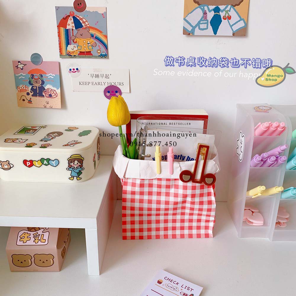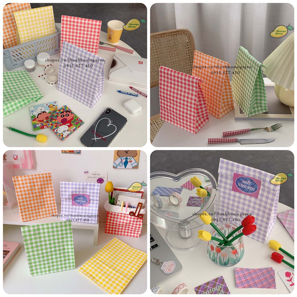 Túi giấy kẻ caro gói quà lưu niệm dễ thương trang trí chụp ảnh decor góc học tập