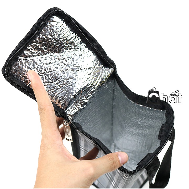 - Mặt trong của túi có 1 lớp tráng bạc giúp cách nhiệt và giữ nhiệt trong thời gian dài, bên ngoài là lớp vải da mịn rất dễ lau chùi khi dính bẩn, không thấm nước.
