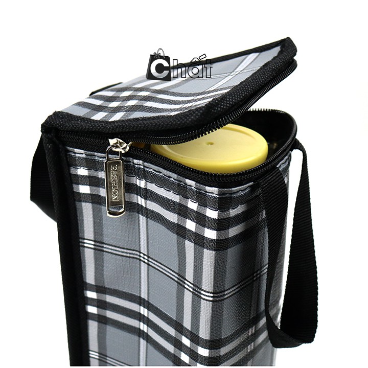 Túi giữ nhiệt bình nước caro thổ cẩm xám