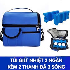 Túi giữ nhiệt, giữ lạnh hai ngăn cao cấp tặng 2 đá sóng 3 ngăn