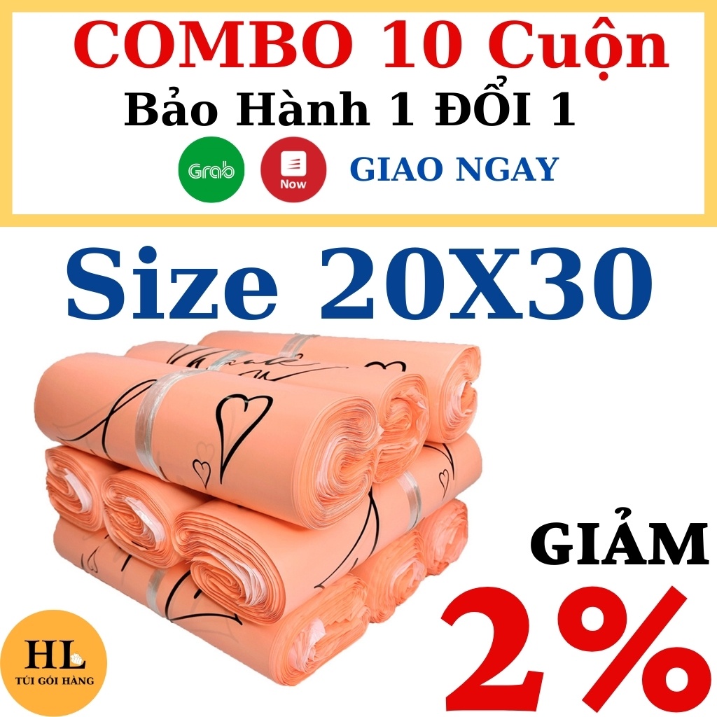 Nhà cửa & Đời sống > Dụng cụ chăm sóc nhà cửa > Túi nilon & túi rác || Túi gói hàng hồng đào combo 10 cuộn cao cấp in thank you size 20x30 TUIGOIHANGHLCòn hàng
