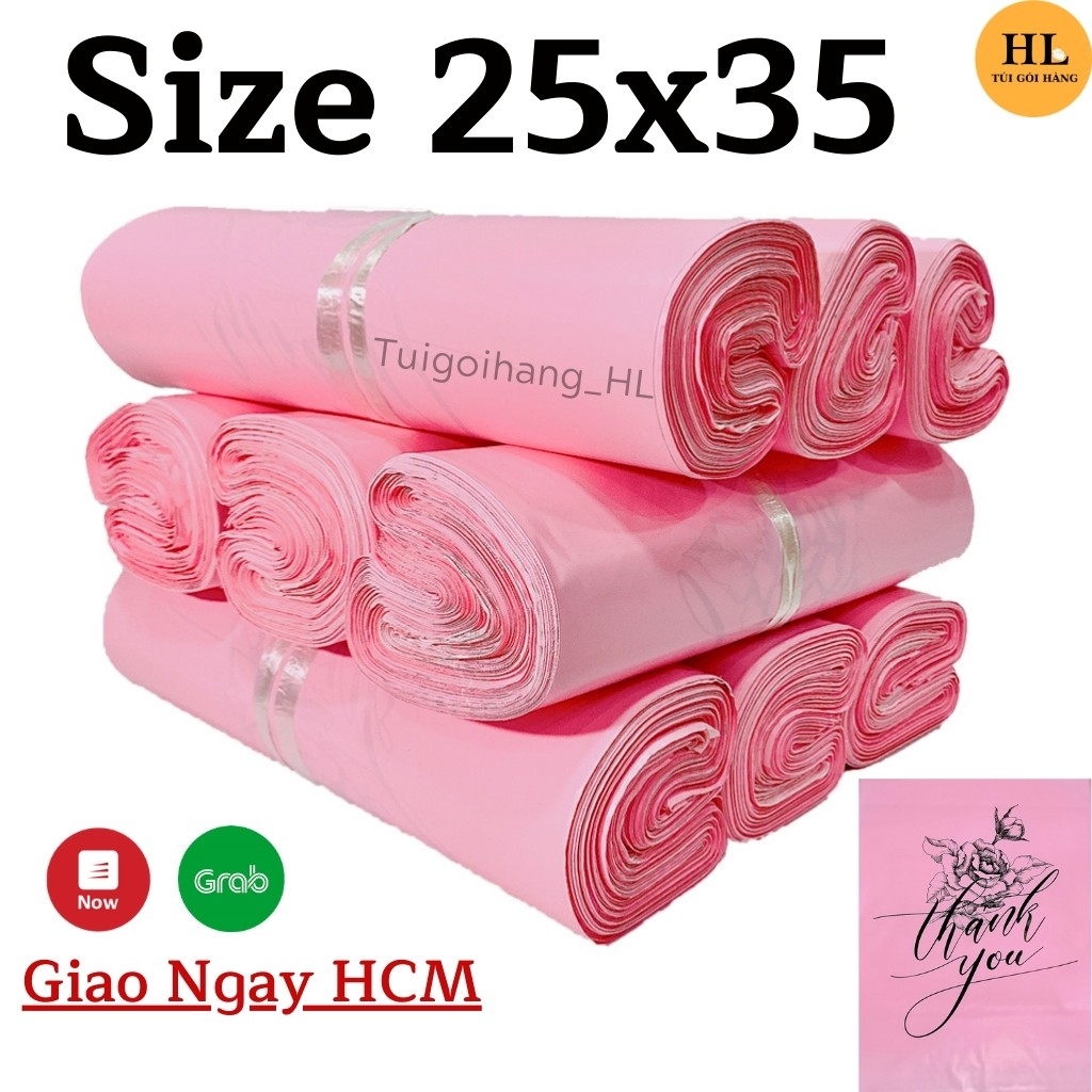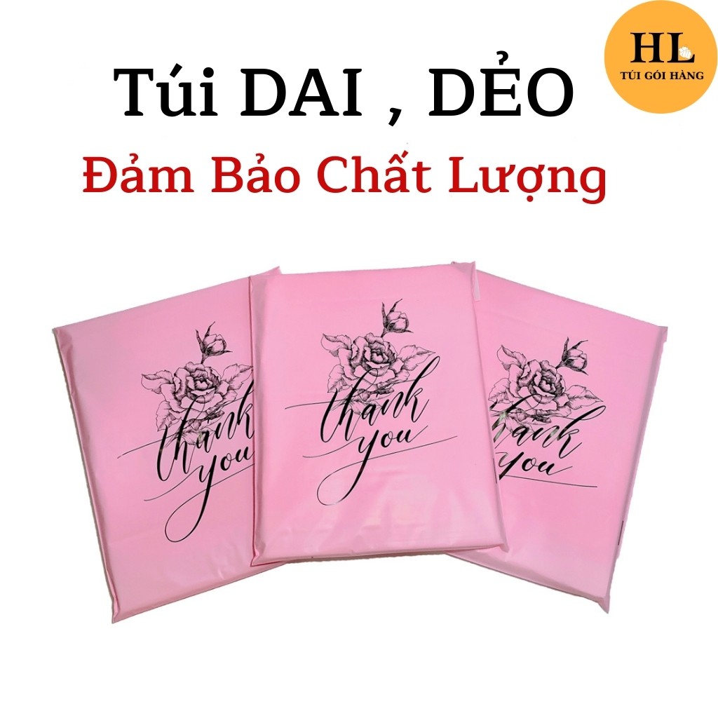 Túi gói hàng hồng pastel chất liệu cao cấp in thank you hoa văn size 25x35 TUIGOIHANGHL