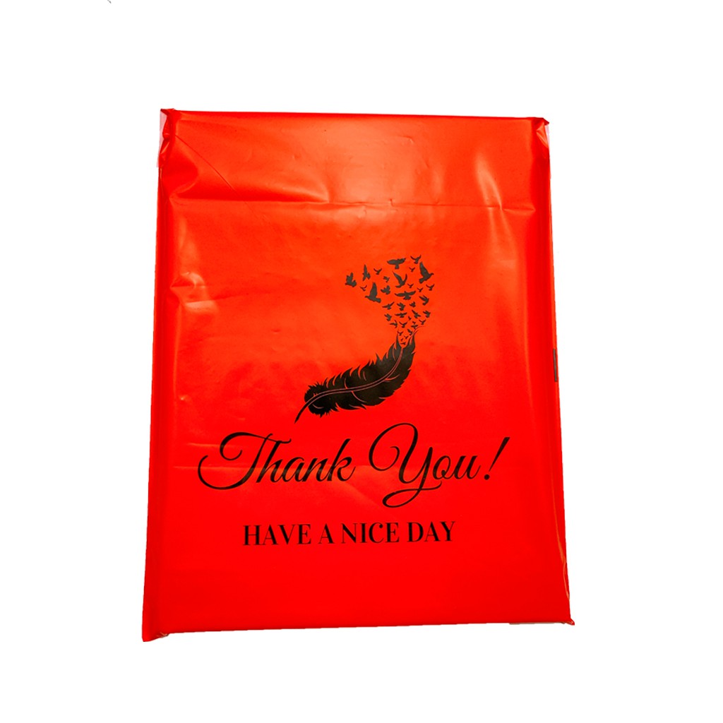 Túi gói hàng in sẳn thiệp tri ân & khuyến khích khách hàng đánh giá màu đỏ size 30x42 TUIGOIHANGHL