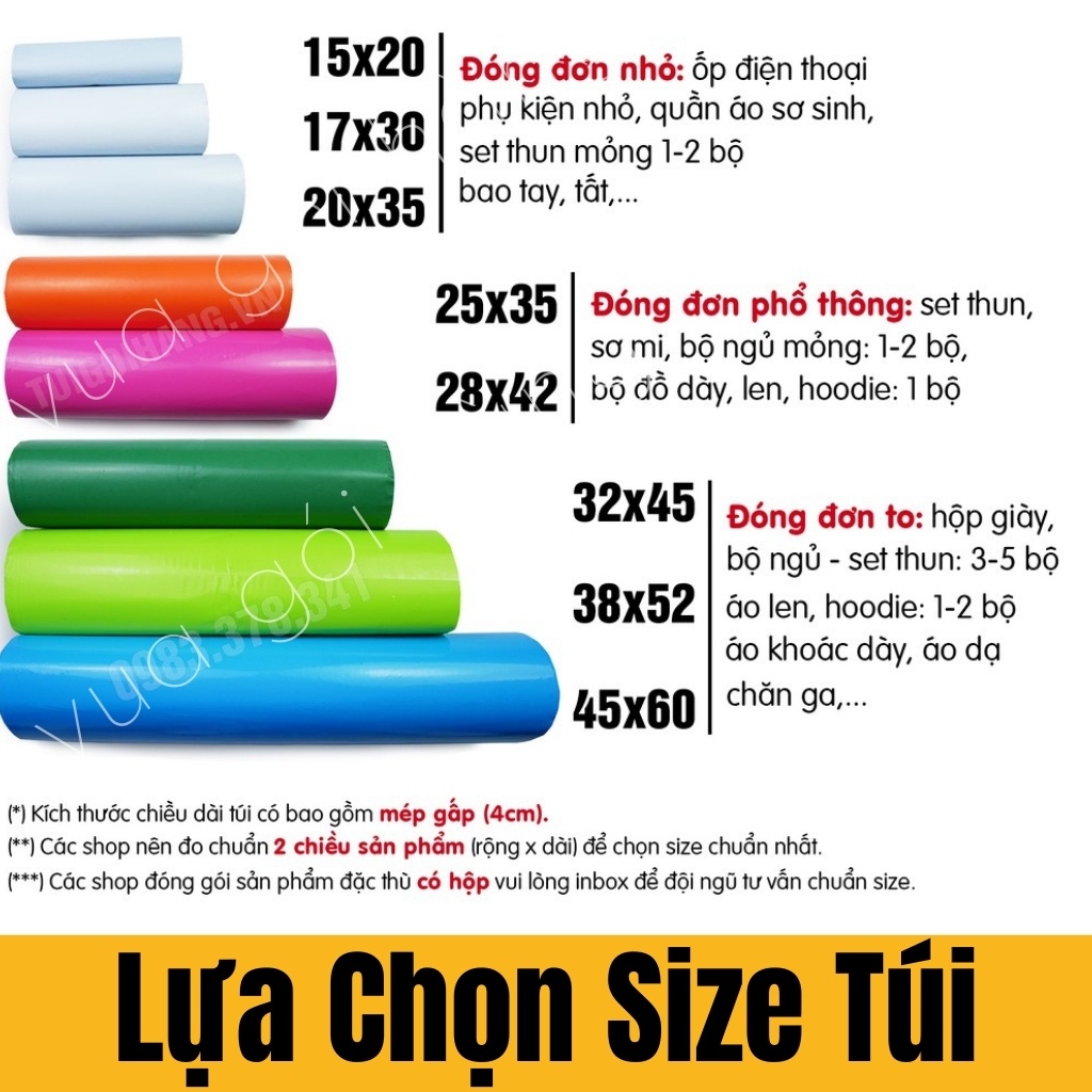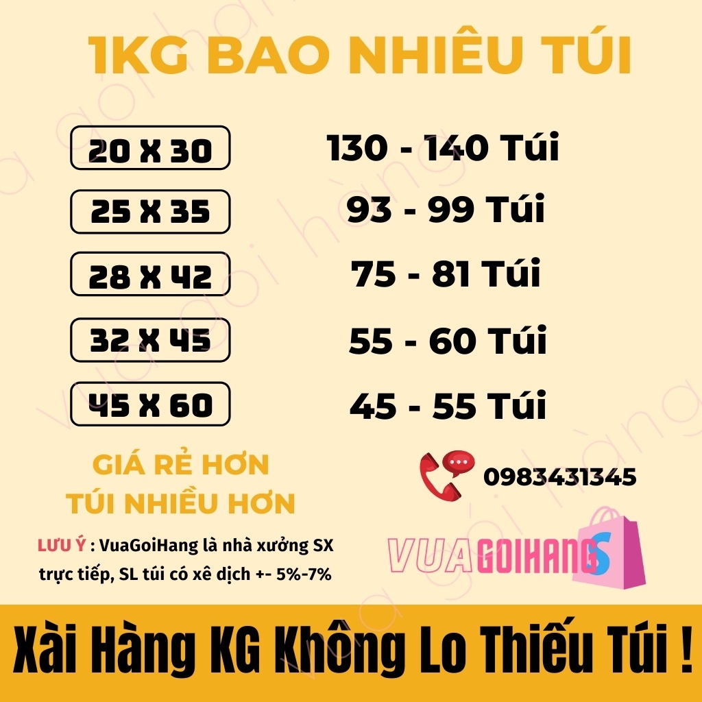 - Lưu Ý: số lượng cái/kg có thể thay đổi tùy theo đợt sản xuất (độ dày mỏng của túi, VD: túi dày sẽ ít số cái hơn)