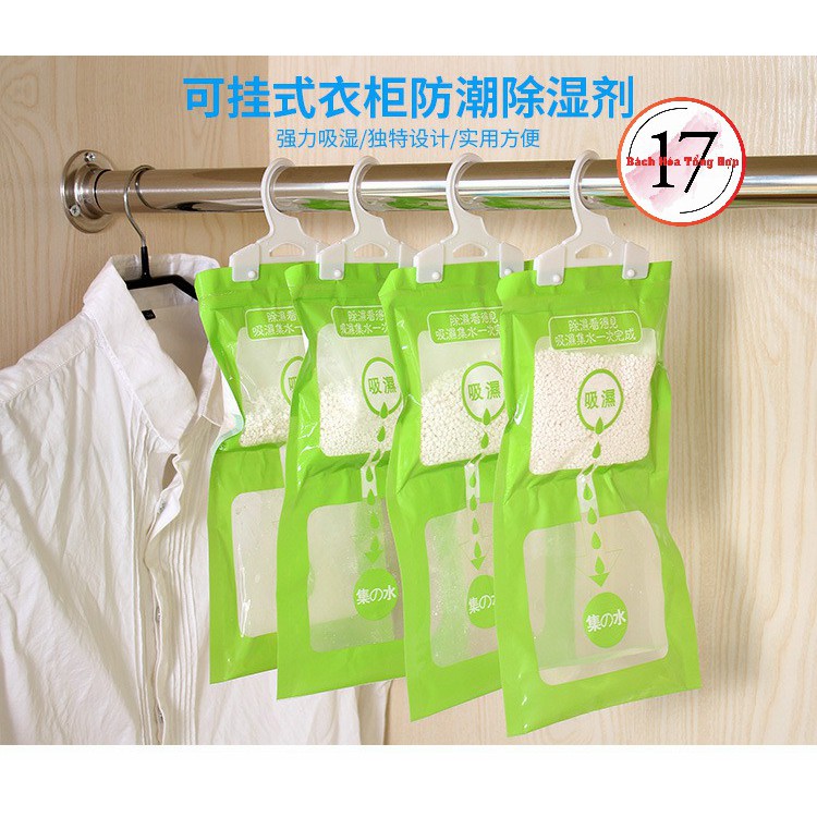 Túi treo hạt chống ẩm mốc tủ quần áo, giày dép, phòng bếp, phòng ăn, hay kể cả trong nhà tắm, nhà vệ sinh, phòng ngủ…để loại bỏ mùi hôi, hạn chế nấm mốc, ẩm thấp. Đây là một trong những dụng cụ tiện lợi, dùng đơn giản. Chỉ cần bạn treo lên vị trí nơi cần chống ẩm là được.