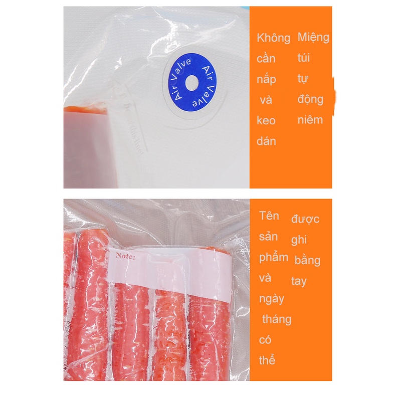 - Túi có 1 mặt nhám, 1 mặt sần, màu trong suốt giúp dễ dàng nhìn thấy thực phẩm bên trong túi