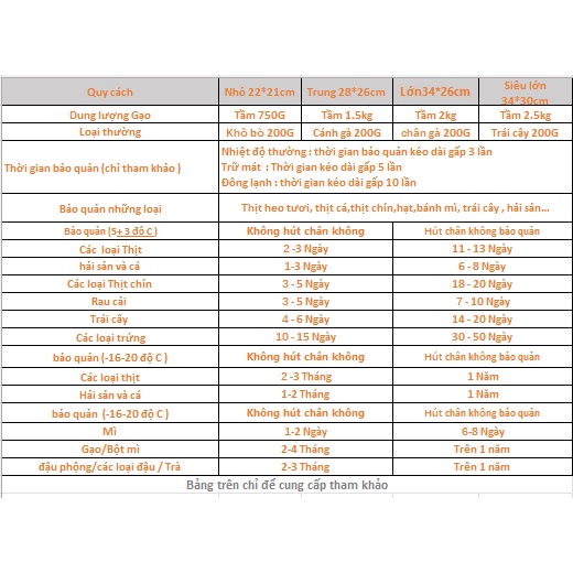 Giới thiệu Túi hút chân khôg đựng thực phẩm được tái sử dụng nhều lần , nhiều kích cỡ lựa chọn