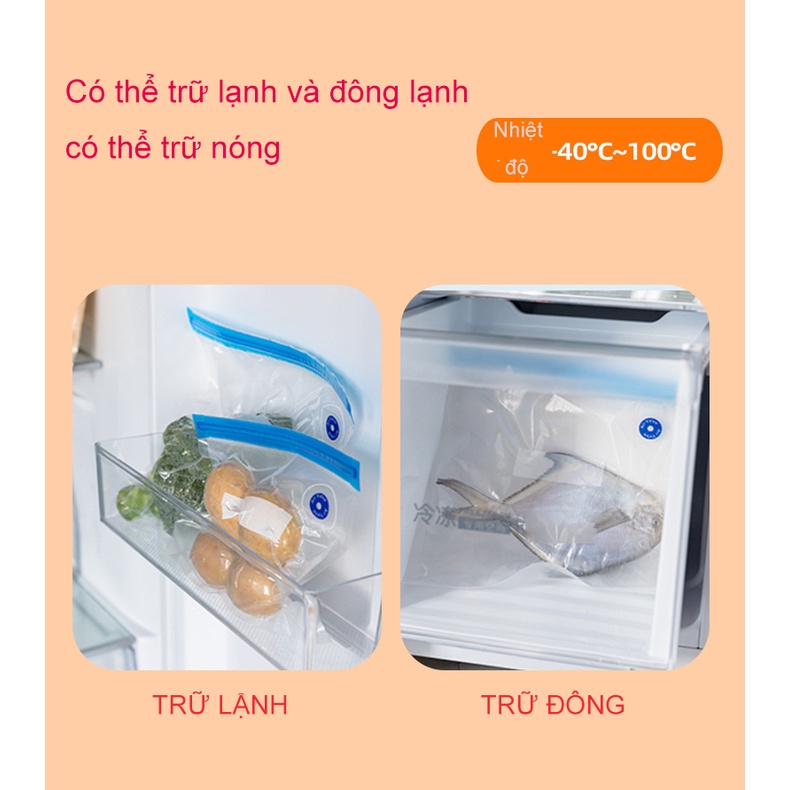- Miệng túi có 2 đường khóa zip chắc chắn, dễ dàng bỏ thực phẩm vào hoặc lấy ra