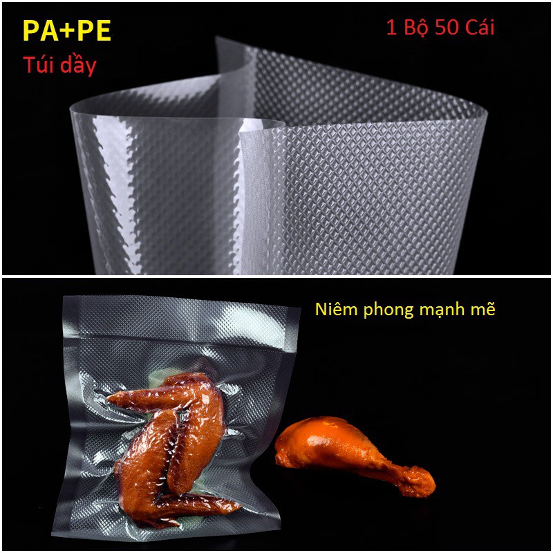 Túi hút chân không 1 mặt nhám 1 mặt trơn size 17-25cm dầy 19 lụa-1 bộ 50 túi