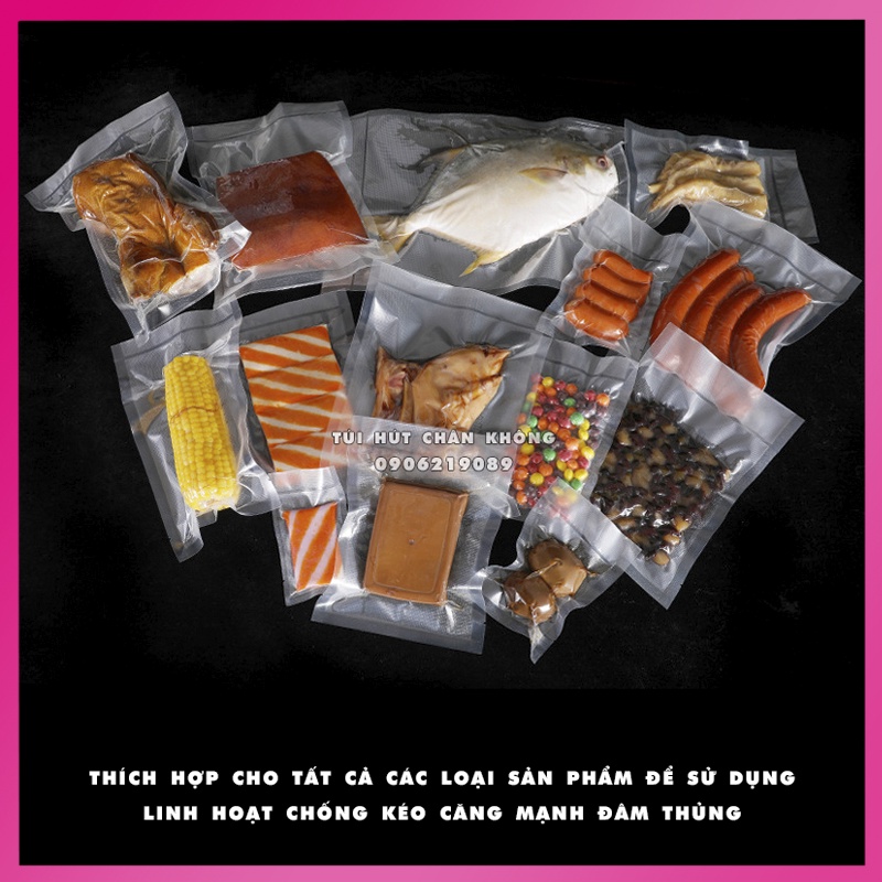 THÔNG TIN SẢN PHẨM:Túi hút chân không thực phẩm được ứng dụng công nghệ hút chân không hiện đại, làm từ nhựa PA-PE, có công dụng đựng và bảo quản các loại thực phẩm, hàng hóa và đồ dùng hàng ngày,...Túi hút chân không đựng thực phẩm tạo ra môi trường chân không và giúp nâng cao hiệu suất bảo quản sản phẩm.