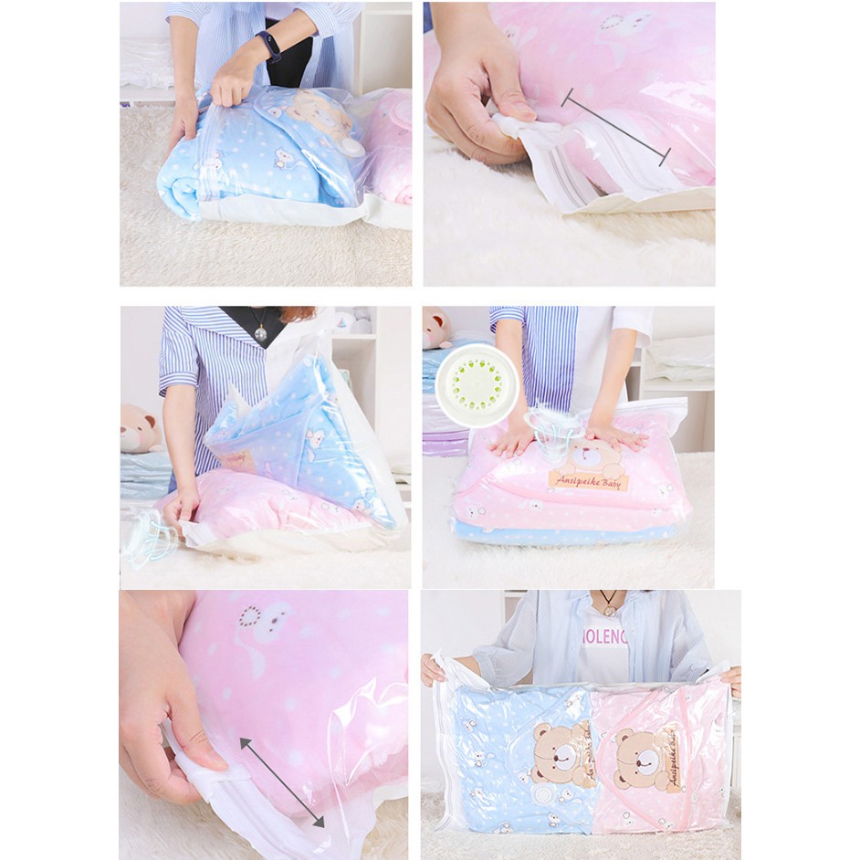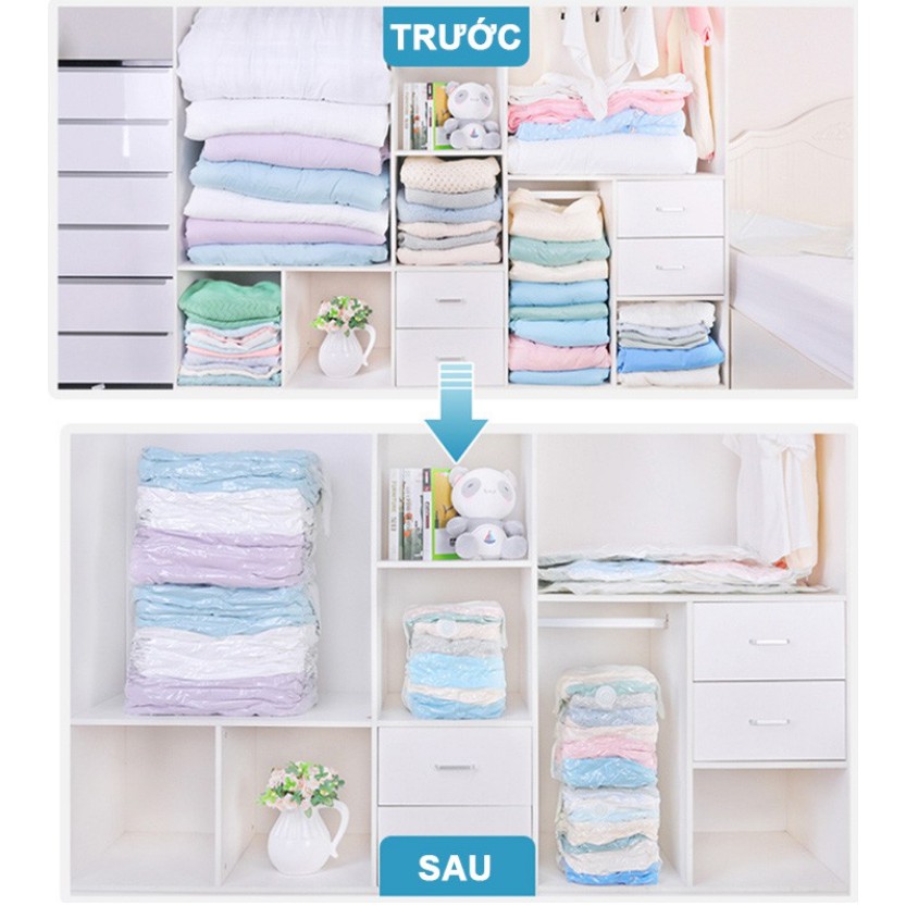❉ Khả năng nén lại chỉ còn 1/4 kích thước ban đầu và bảo quản chăn màn, ga, gối, quần áo, khăn mặt khỏi bụi bẩn, côn trùng, ẩm mốc, mỗi mọt ...