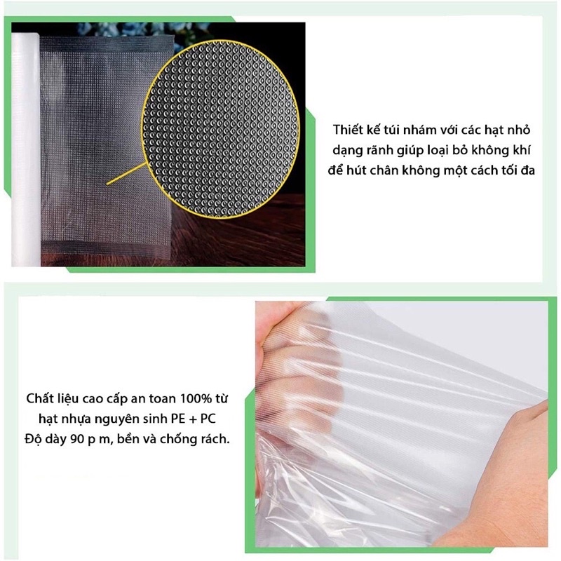 - Túi hút chân không 1 mặt nhám 1 mặt trơn có độ dẻo và dai cực tốt, có thể bỏ vào lo vi sóng mà các hạt nhựa nguyên sinh ko hề tan chảy.