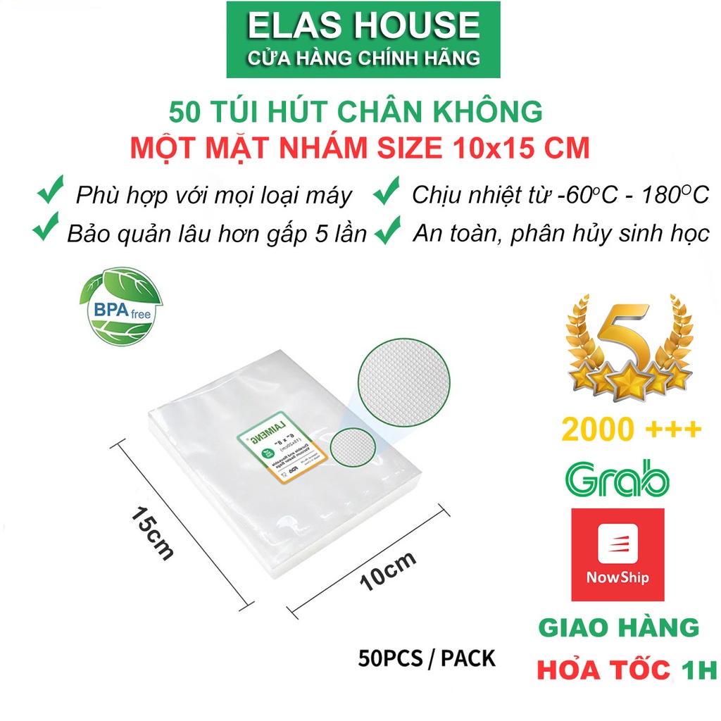Bộ 50 túi hút chân không một mặt nhám đựng thực phẩm kích thước rộng 10cm dài 15cm.Túi PA/PE hút chân không là các túi dùng để bảo quản thực phẩm bên trong và được xử lý theo công nghệ rút chân không bằng máy hút chân không chuyên dụng.Sau khi hút hết không khí,máy hút chân không có tác dụng hàn kín mép túi để không khí không bị tràn vào túi.Nhằm đảm bảo thời gian sử dụng của sản phẩm được lâu hơn, giữ được chất lượng nguyên thủy của sản phẩm bên trong, không bị không khí môi trường làm ảnh hưởng tới chất lượng sản phẩm, thực phẩm.