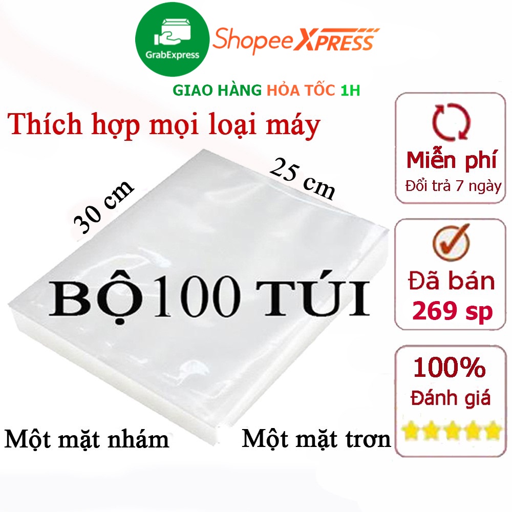 Túi hút chân không thực phẩm túi một mặt nhám, sần rộng 25cm dài 30 cm cho máy hút chân không mini [ 100 túi ]