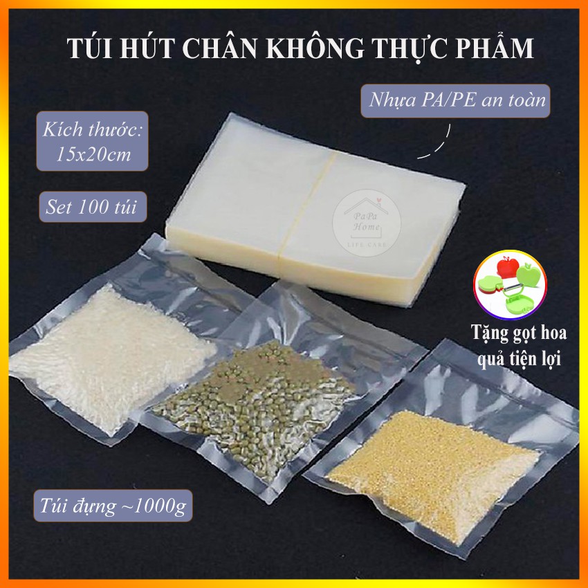 Giới thiệu Túi Hút Chân Không Thực Phẩm 100 Túi Mặt Nhám 15x20cm Chuyên Dụng Cho Máy Hút Chân Không PAPAA.HOME