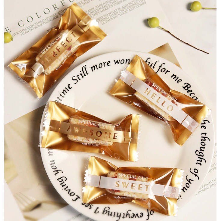 Túi đựng kẹo Nougat cỡ vừa. Có thể đựng bánh quy loại nhỏ như: bánh cá, bánh lưỡi mèo vvv,....v