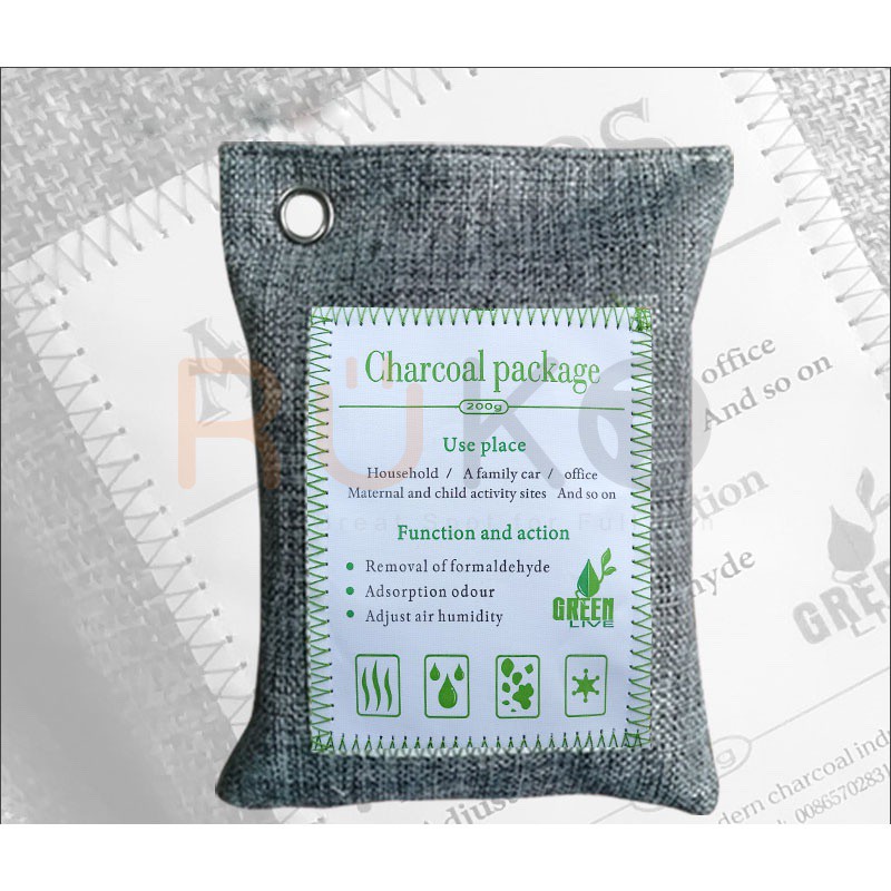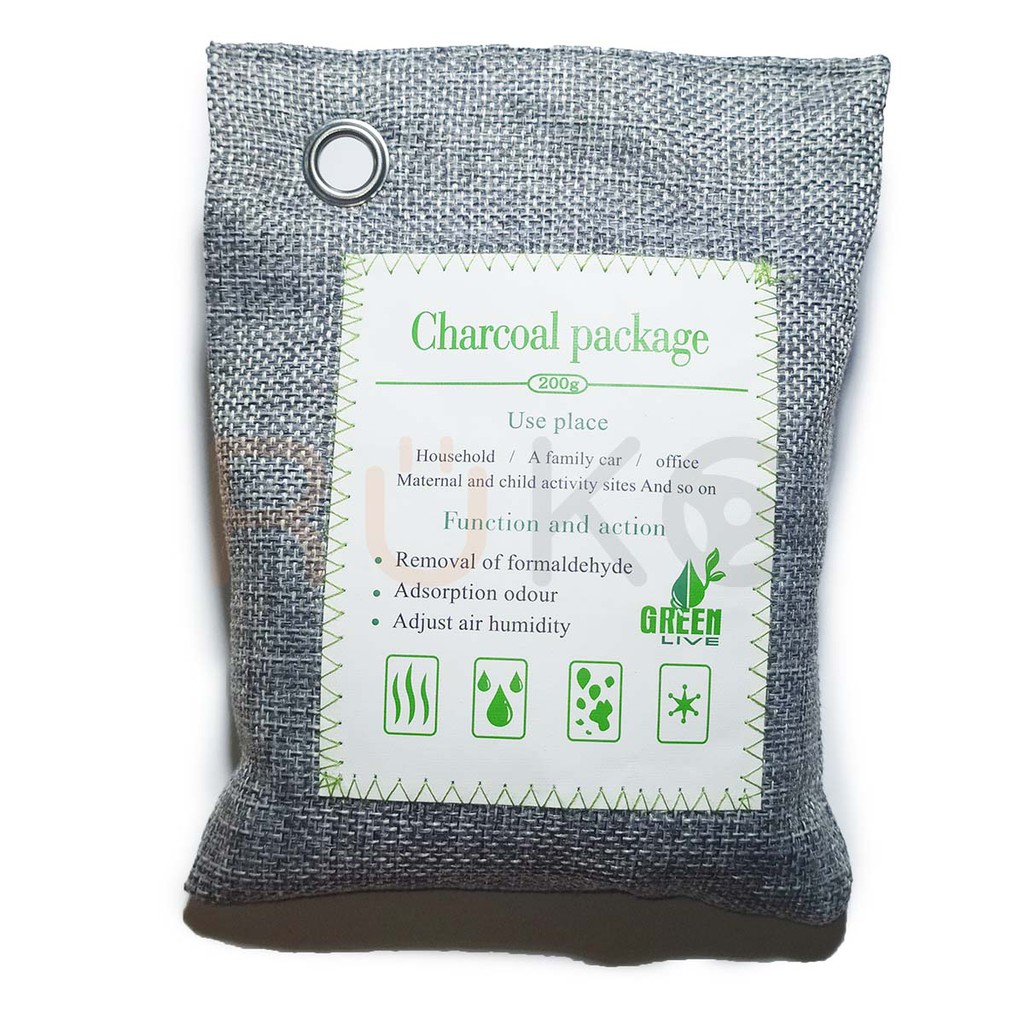 Nhà cửa & Đời sống > Chất khử mùi, làm thơm nhà > Khác || Túi Khử Mùi Than Tre Hoạt Tính Green Live Charcoal 200g cho xe hơi, tủ quần áo, tủ giày dépCòn hàng