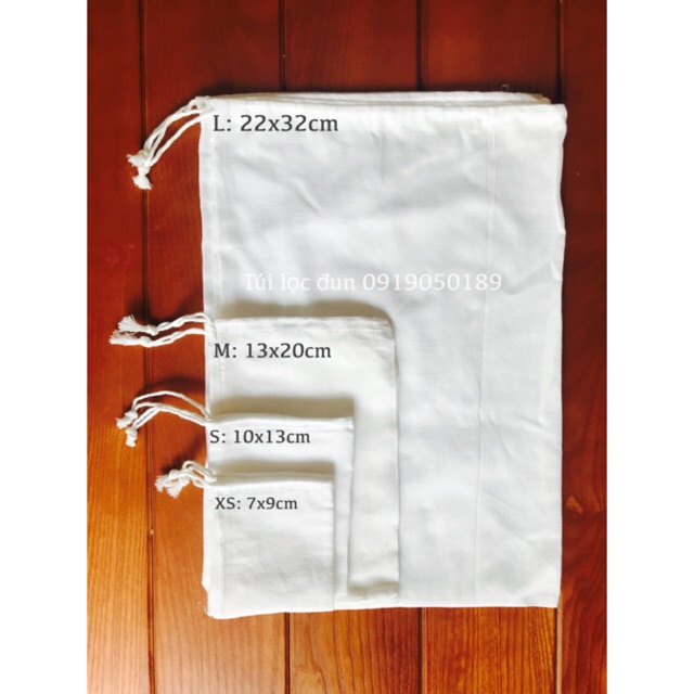 Túi lọc đun vải cotton gồm 4 cỡ ( mỗi cỡ 2c)Túi chuyên dùng: Lọc và đun trong nước sôi